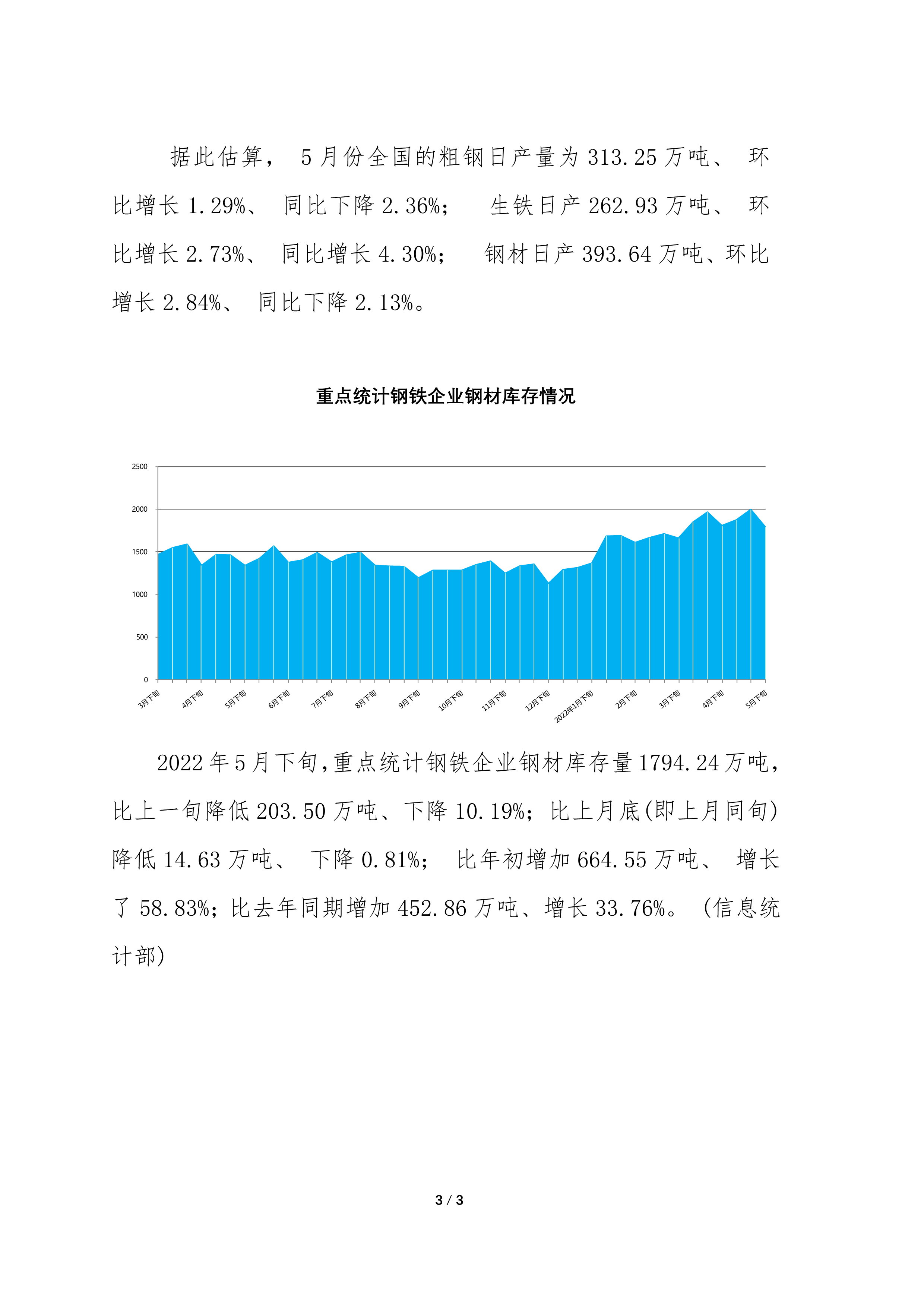 中钢协:2022年5月下旬重点统计钢铁企业产存情况